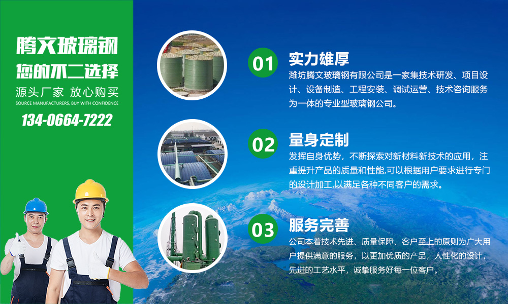 騰文玻璃鋼新聞中心專業(yè)生產(chǎn)制造玻璃鋼容器/儲罐,一體化污水處理/化糞池,脫硫脫硝設(shè)備,玻璃鋼凈化塔,玻璃鋼冷卻塔等